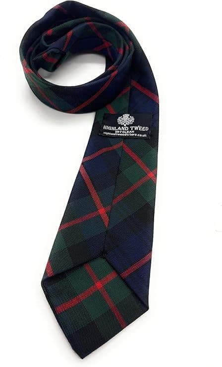 Elevate your formal attire with this distinguished Murray of Atholl Tartan Necktie from Highland Tweed. Proudly handmade in Scotland, this classic necktie showcases the striking Murray of Atholl tartan, featuring a rich combination of deep navy blue and forest green with bold red overcheck lines — a pattern steeped in Scottish Highland heritage. The finely woven fabric drapes beautifully and holds a knot with ease, making it ideal for weddings, Highland gatherings, Burns Night suppers, or any occasion that calls for a touch of Scottish tradition. Whether you are of Scottish descent or simply appreciate fine craftsmanship, this tartan tie is a timeless addition to any wardrobe. Please note that this tie is dry clean only to preserve the integrity of the fabric and the vibrancy of the tartan colours.