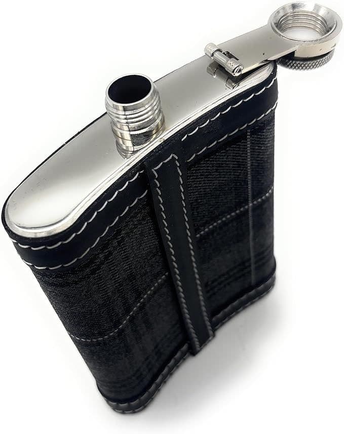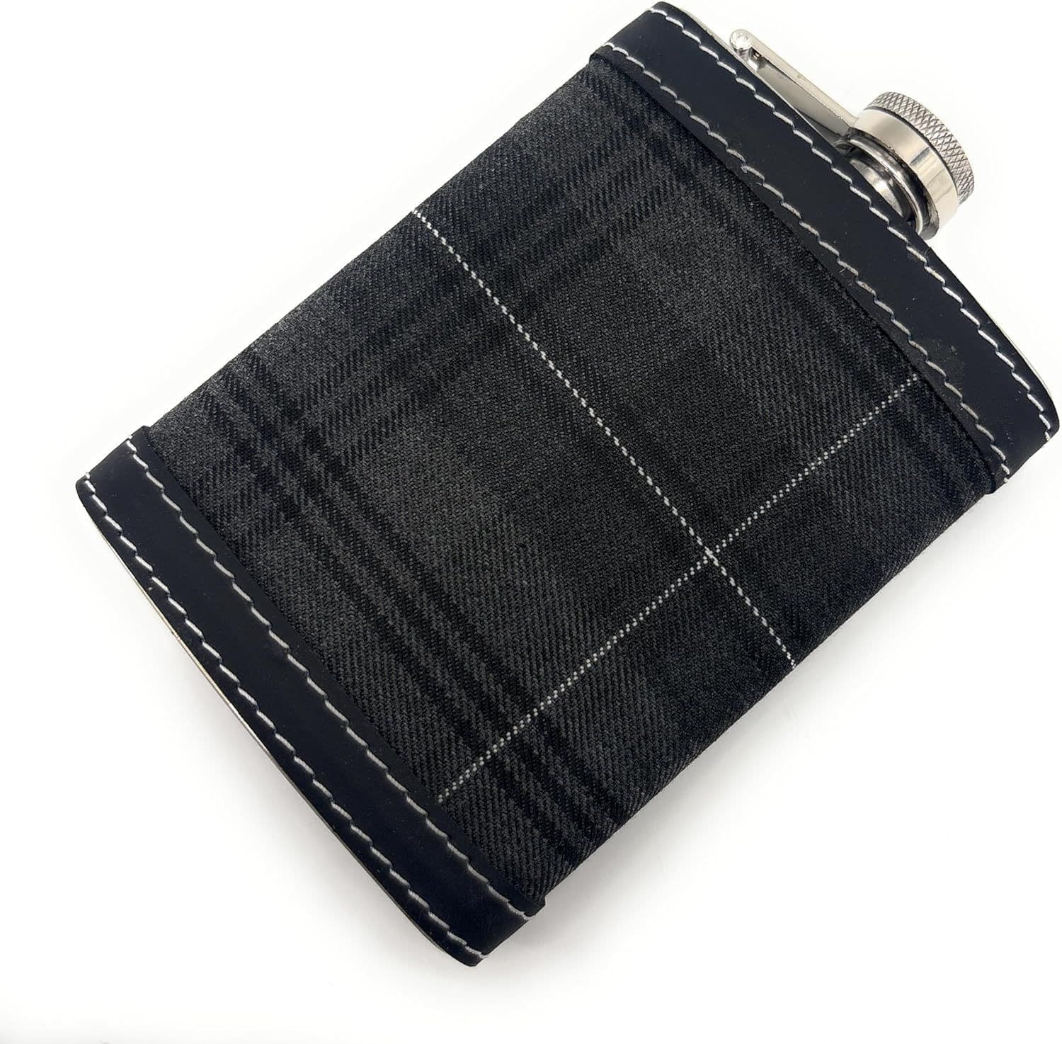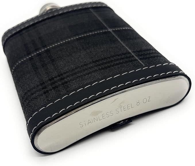 - PREMIUM DESIGN: Stylish tartan pattern hip flask with black leather trim and contrasting white stitching for a sophisticated look